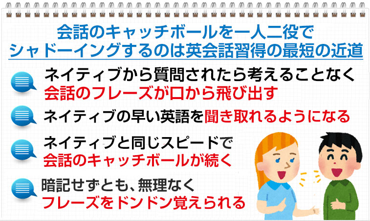 それは、1人2役になって、会話のキャッチボールをシャドーイングするのです。