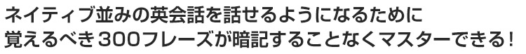 つまり、ネイティブが日常会話で使っている、この300フレーズを聞いたり、話せたりできるようになれば、あなたも英語初心者を卒業できるだけでなく、上級者へと一気に英語の能力を高めることができるのです。