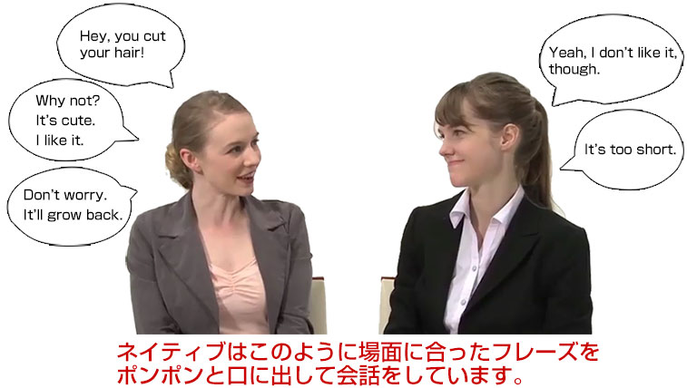 私たち日本人と同じで、英語を話すネイティブたちも、フレーズを場面に合わせてポンポンと口に出し、会話のキャッチボールをしているのです。